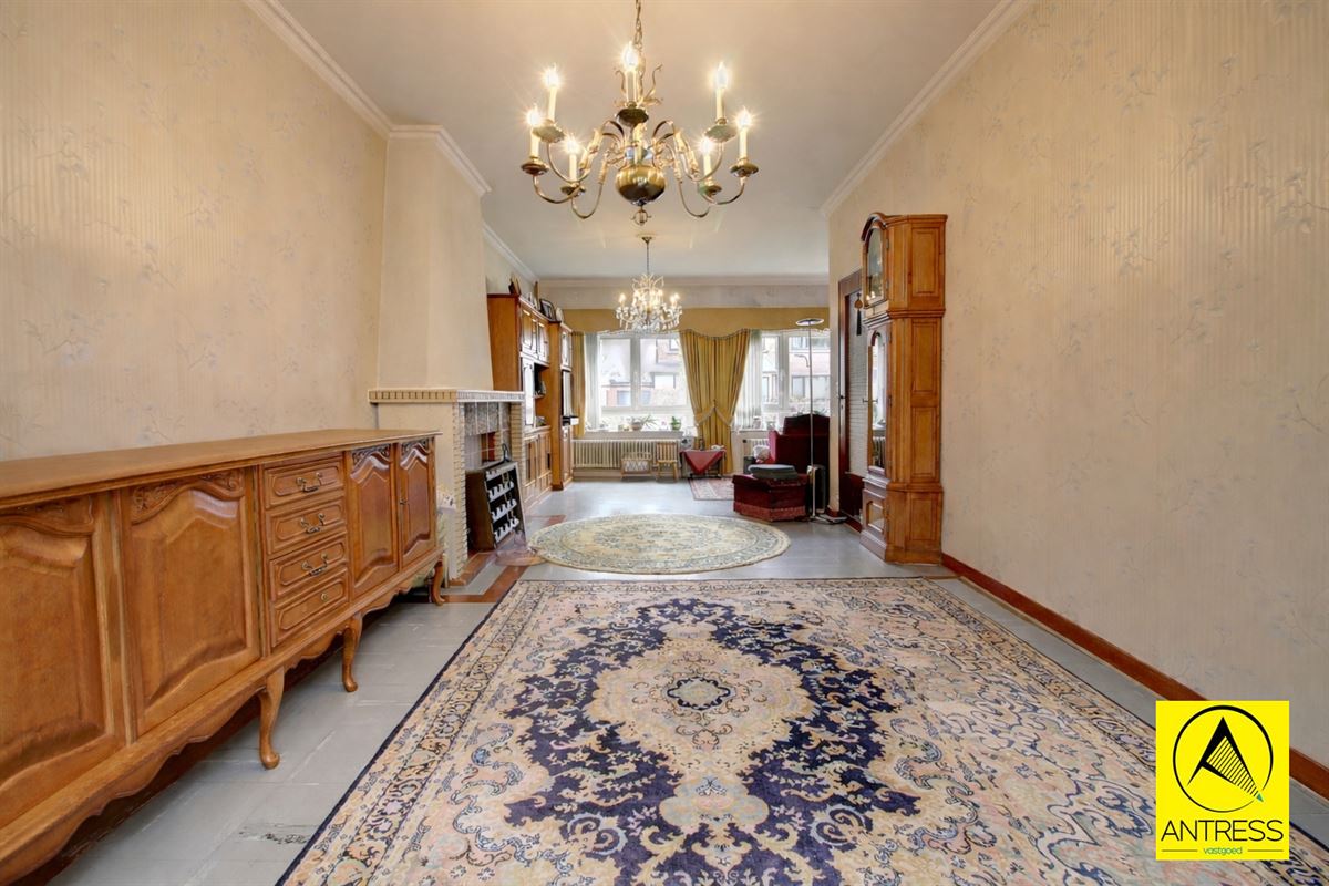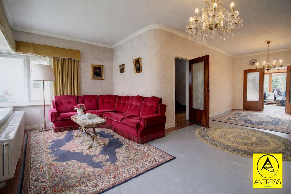 De ruime L-vormige leefkamer geniet via de talrijke ramen van aangename lichtinval.