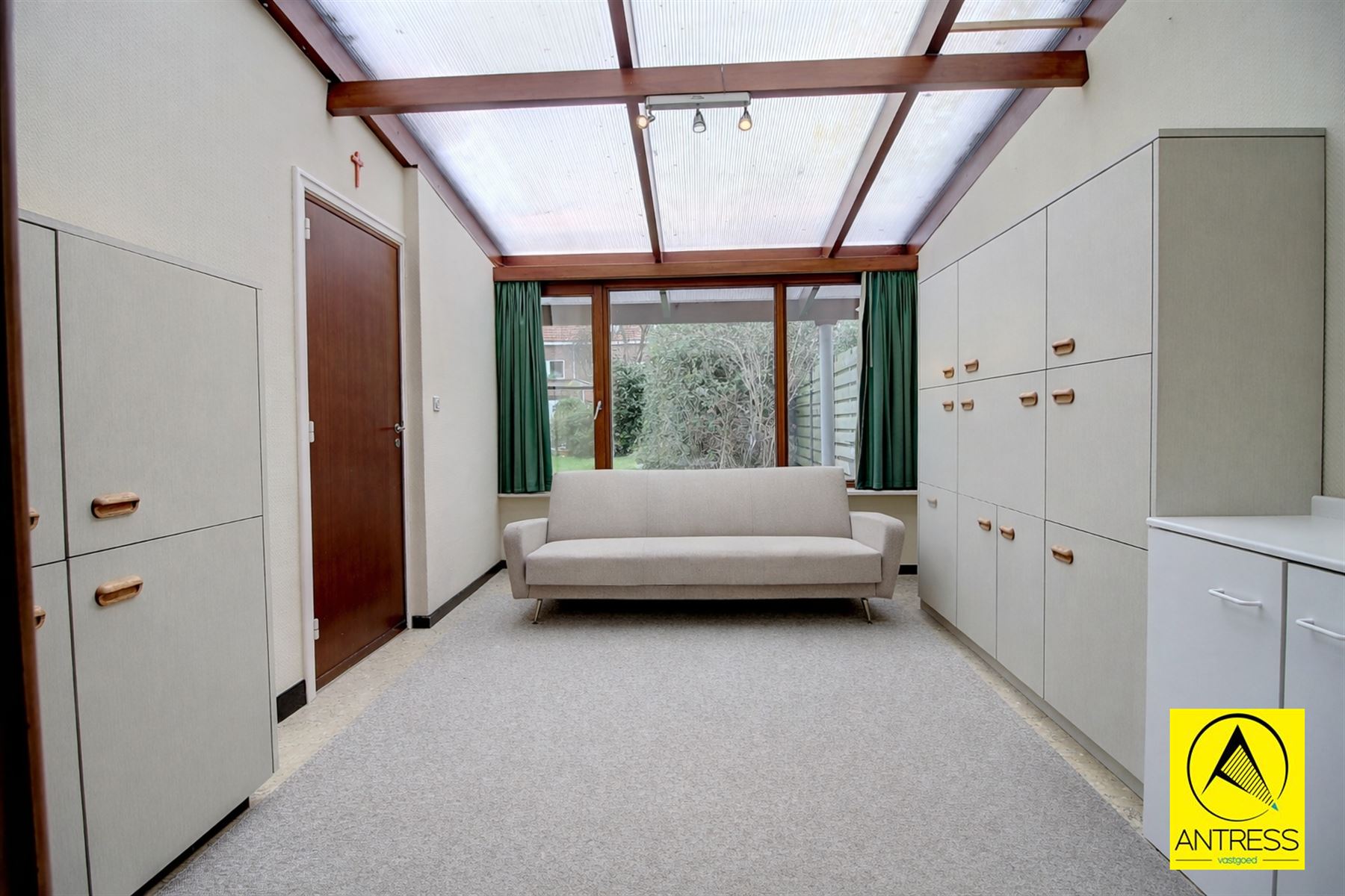 Achteraan de leefruimte treffen we de veranda met leuk uitzicht op de tuin.