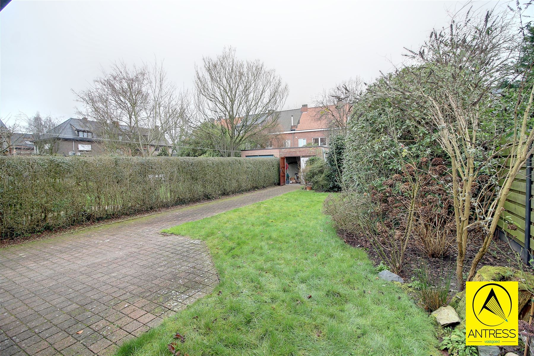 Voor de woning treffen we een leuke voortuin en de oprit richting de garagebox achteraan het perceel.