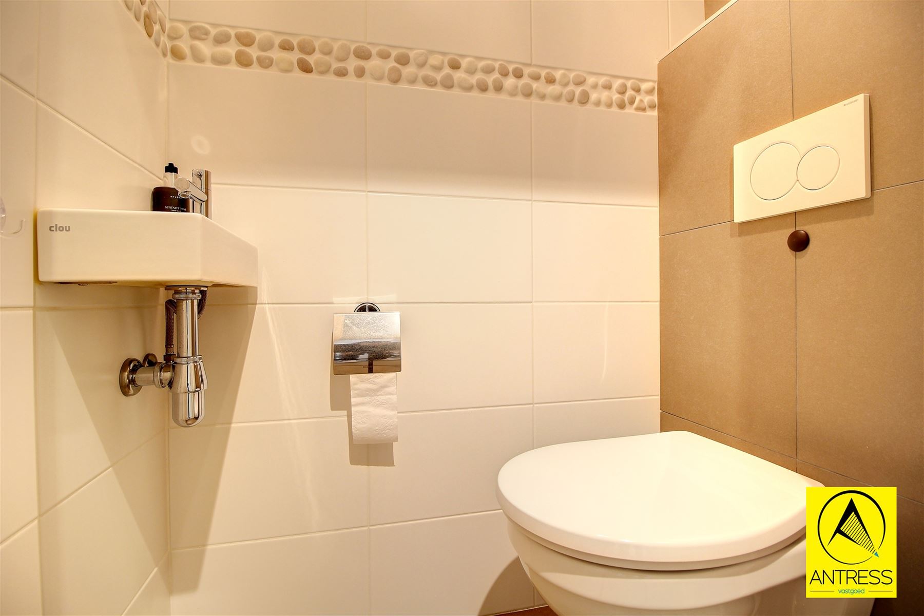 De inkomhal is voorzien van een handige ingemaakte vestiaire kast en een gasten toilet met handen wasser.