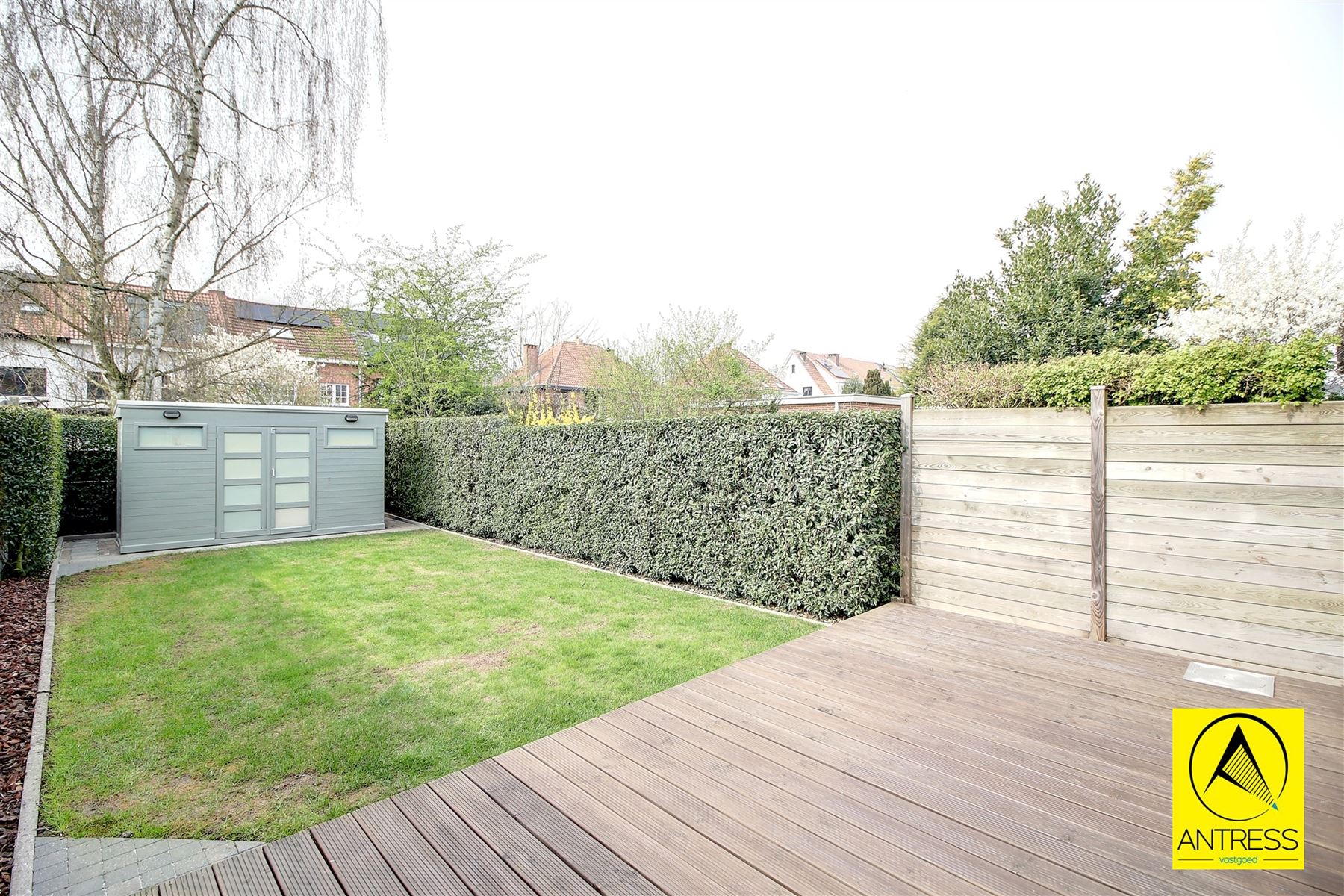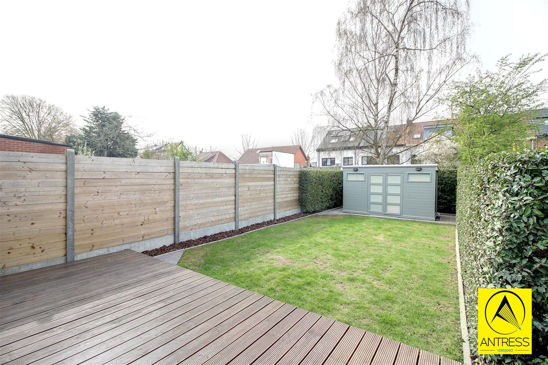 De tuin geniet de ideale Zuidwest oriëntatie, het terras beschikt over een elektrische zonne luifel en achteraan treffen we het handige tuinhuis. Voorzieningen water/ elektriciteit aanwezig.