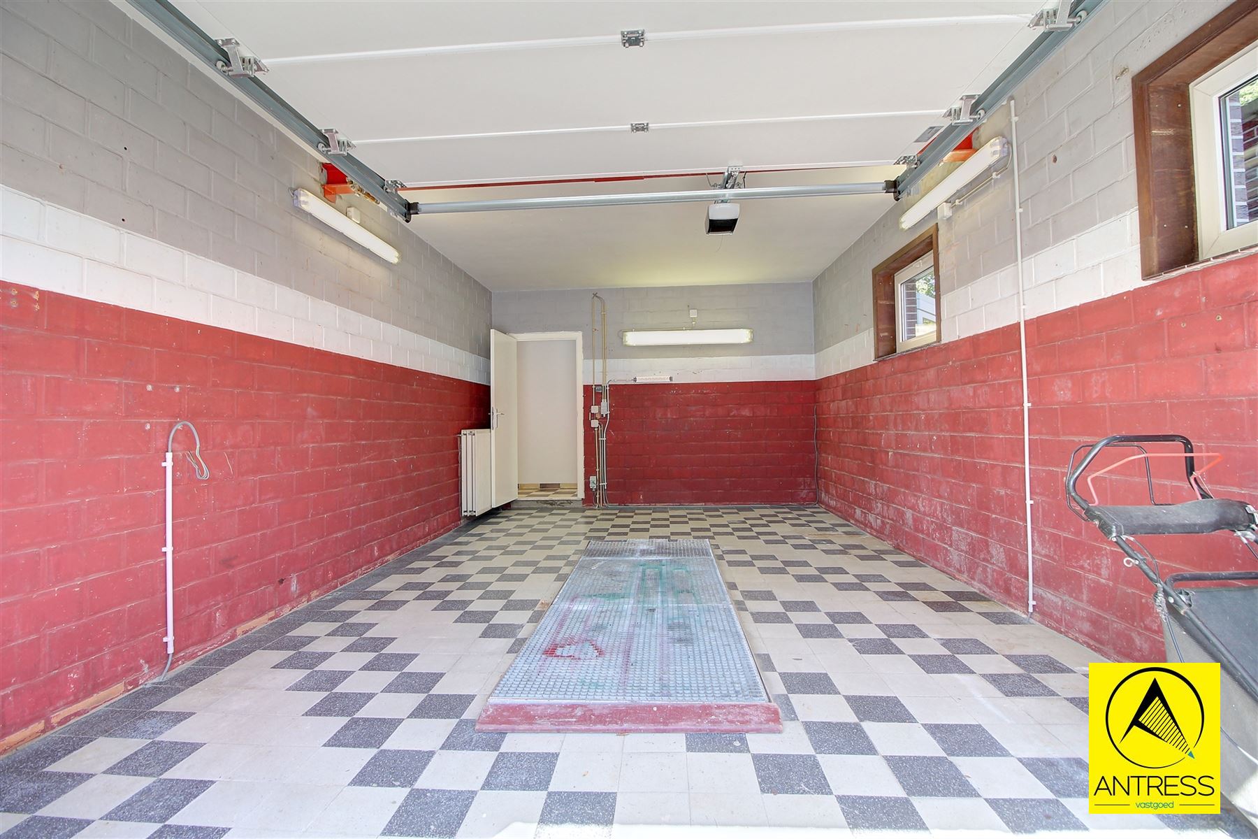 De inpandige garage is volledig onderkelderd en voorzien van een elektrische sectionaalpoort.