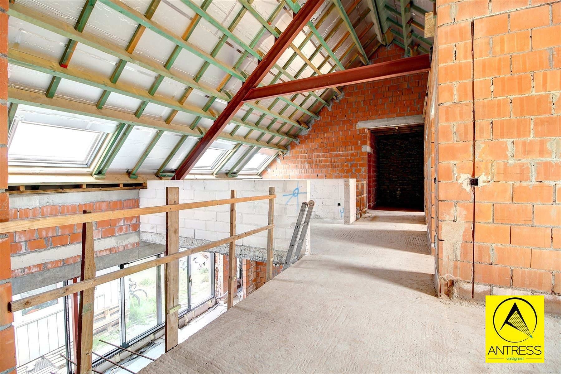 Op de eerste verdieping treffen we de volgende 5 volwaardige slaapkamers met mezzanine's, open bureau grenzend aan de vide, 2 badkamers met telkens aansluitingen voor douche en lavabo, apart wc en een ruime wasplaats.
