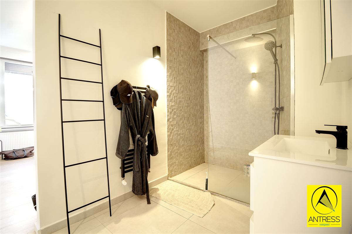 De leefkamer kan makkelijk worden ingericht met eetplaats en salon en geniet via de kamerhoge ramen van aangename lichtinval en leuk zicht op de stadstuin.